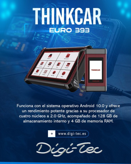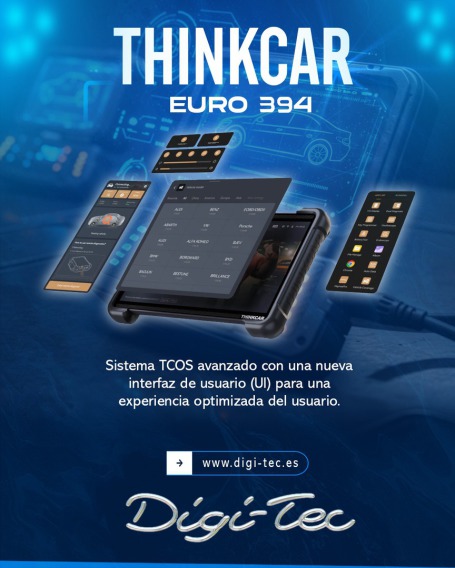 El THINKCAR Thinktool Euro 394 (también conocido en algunos mercados como Expert 394) es un escáner de diagnóstico profesional de gama ultra alta lanzado para la generación 2024/2025. Destaca por la integración de Inteligencia Artificial en sus diagnósticos y por su rapidísimo sistema operativo propio (TCOS). Diseñado para competir directamente con las líneas tope de gama de Autel (Ultra/MS909) y Launch, cuenta con una enorme pantalla de 12 pulgadas y una capacidad de procesamiento brutal. Además, introduce una VCI muy avanzada (Thinklink PRO) que incorpora su propia mini-pantalla. Está preparado de fábrica para diagnosticar tanto vehículos de pasajeros convencionales como vehículos eléctricos (EV), soportando programación en línea y los protocolos de comunicación más exigentes de la actualidad.